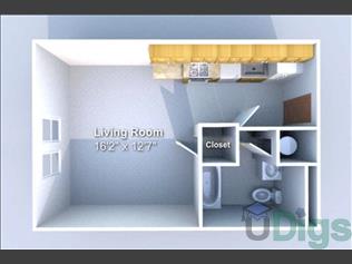 It is a studio with 1 bathroom, a kitchen with all the appliances you need such as a refrigerator, dishwasher, stove cooktop, oven, and a microwave. There is one wardrobe closet, and 2 windows that let in plenty of natural light.